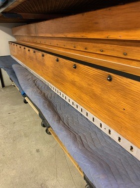Solo pouch boards awaiting restoration. By this stage, the 99 year old leather had all been removed from the boards and then were appropriately cleaned awaiting application of springs and new pouches.