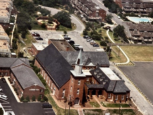 Aerial view from 1988 before we added Jordan Hall and prior to the development of the Cavalier neighborhood.
